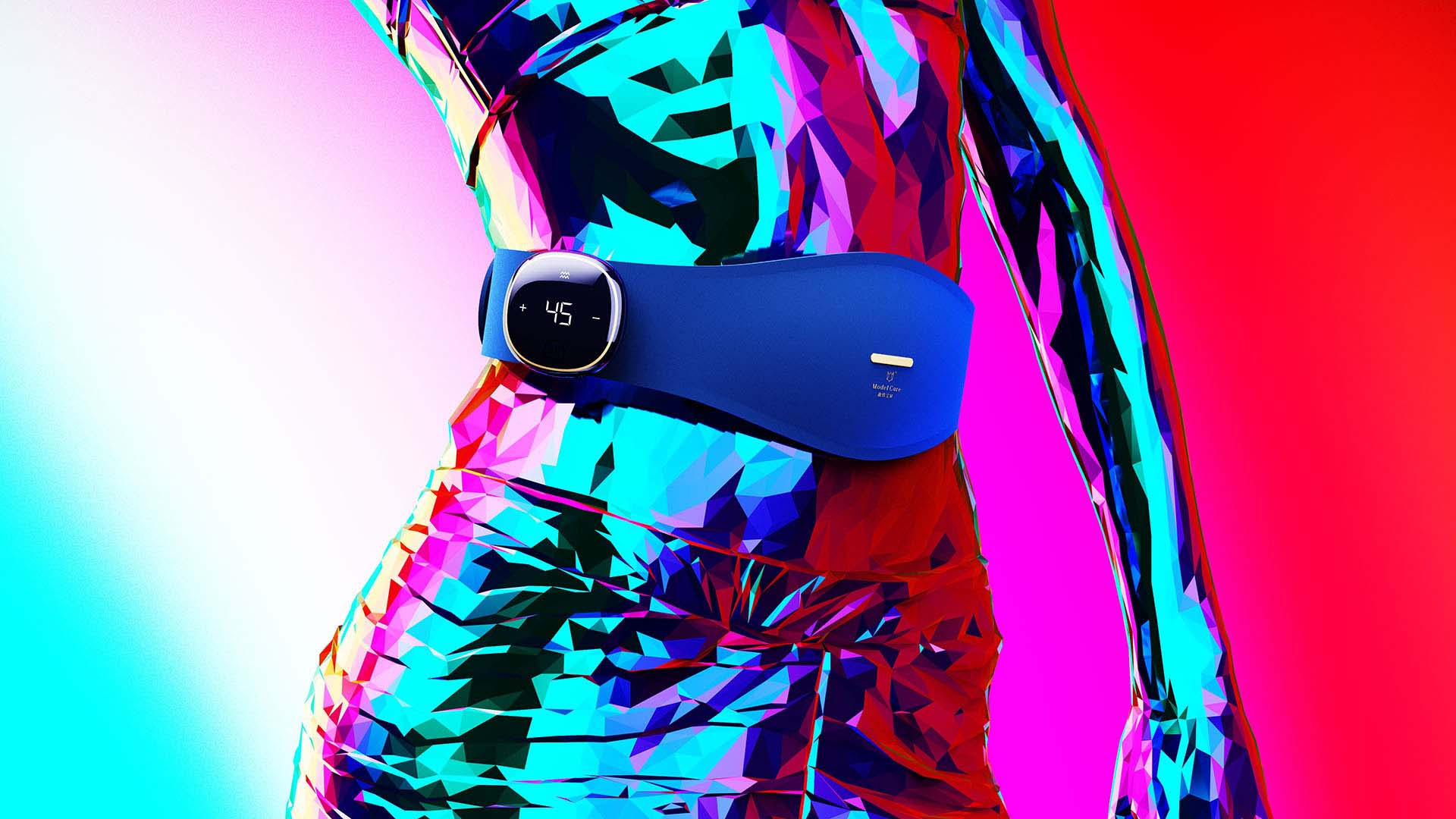 環(huán)腹式曲線設(shè)計(jì),將曲線所具有的特點(diǎn)巧妙地運(yùn)用在設(shè)計(jì)中,當(dāng)腰帶貼合于腰間時(shí)人與產(chǎn)品和諧自然。