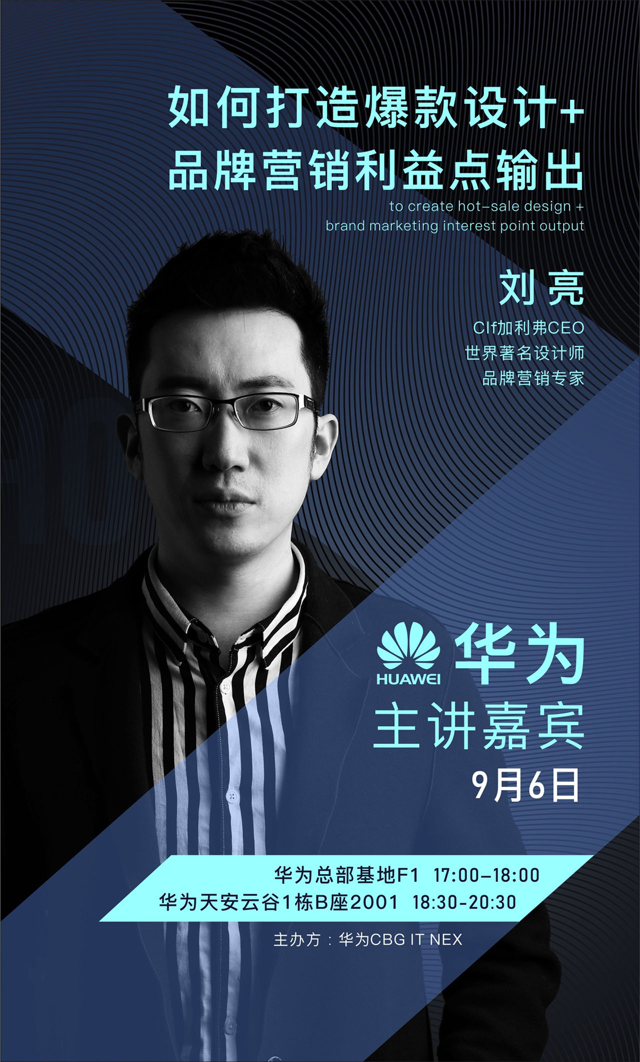 9月 應(yīng)華為總部的邀請(qǐng),加利弗創(chuàng)始人劉亮在華為總部開(kāi)設(shè)《如何全球爆款設(shè)計(jì)+品牌營(yíng)銷(xiāo)利益點(diǎn)輸出》演講講座,并成為全球第一個(gè)到華為總部開(kāi)設(shè)相關(guān)講座的設(shè)計(jì)公司。此次講座的主講人為CLF加利弗設(shè)計(jì)的CEO劉亮,該講座主要是圍繞著加利弗特有的“全球化工業(yè)設(shè)計(jì)+全案品牌策劃營(yíng)銷(xiāo)”進(jìn)行,并對(duì)華為員工針對(duì)性的培訓(xùn)。劉亮尤為提出了“利益點(diǎn)”這一重要理論思想,引起了華為到場(chǎng)人員的高度重視。