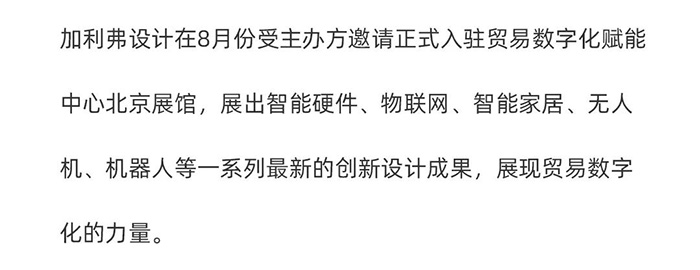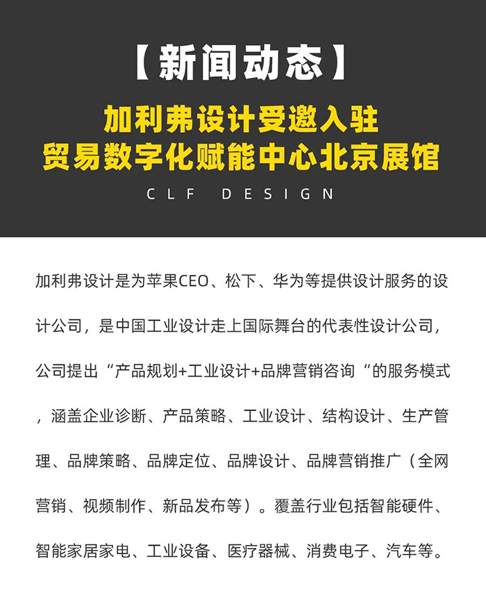 標(biāo)題:加利弗產(chǎn)品設(shè)計(jì)受邀入駐貿(mào)易數(shù)字化賦能中心北京展館