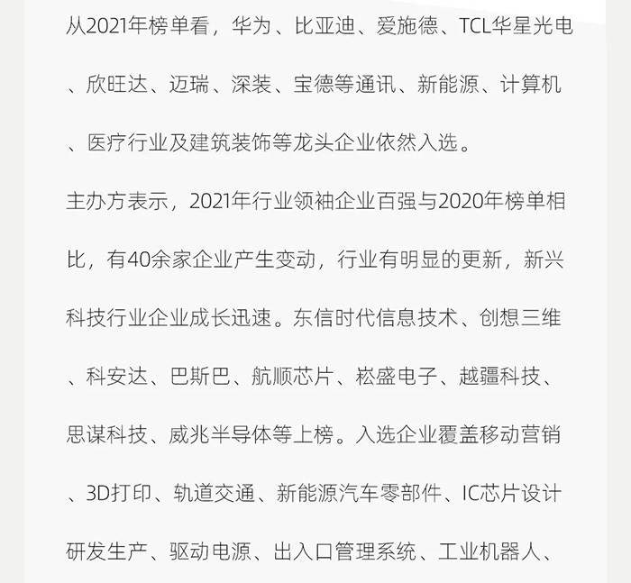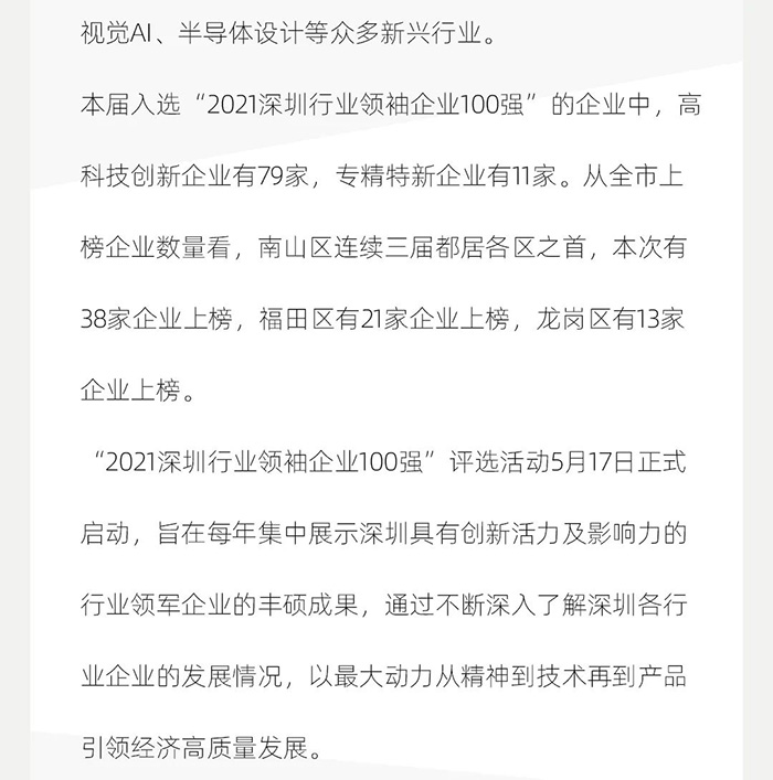 2021深圳行業(yè)領(lǐng)袖企業(yè)100強(qiáng)出爐,CLF加利弗作為唯一一家設(shè)計(jì)公司上榜