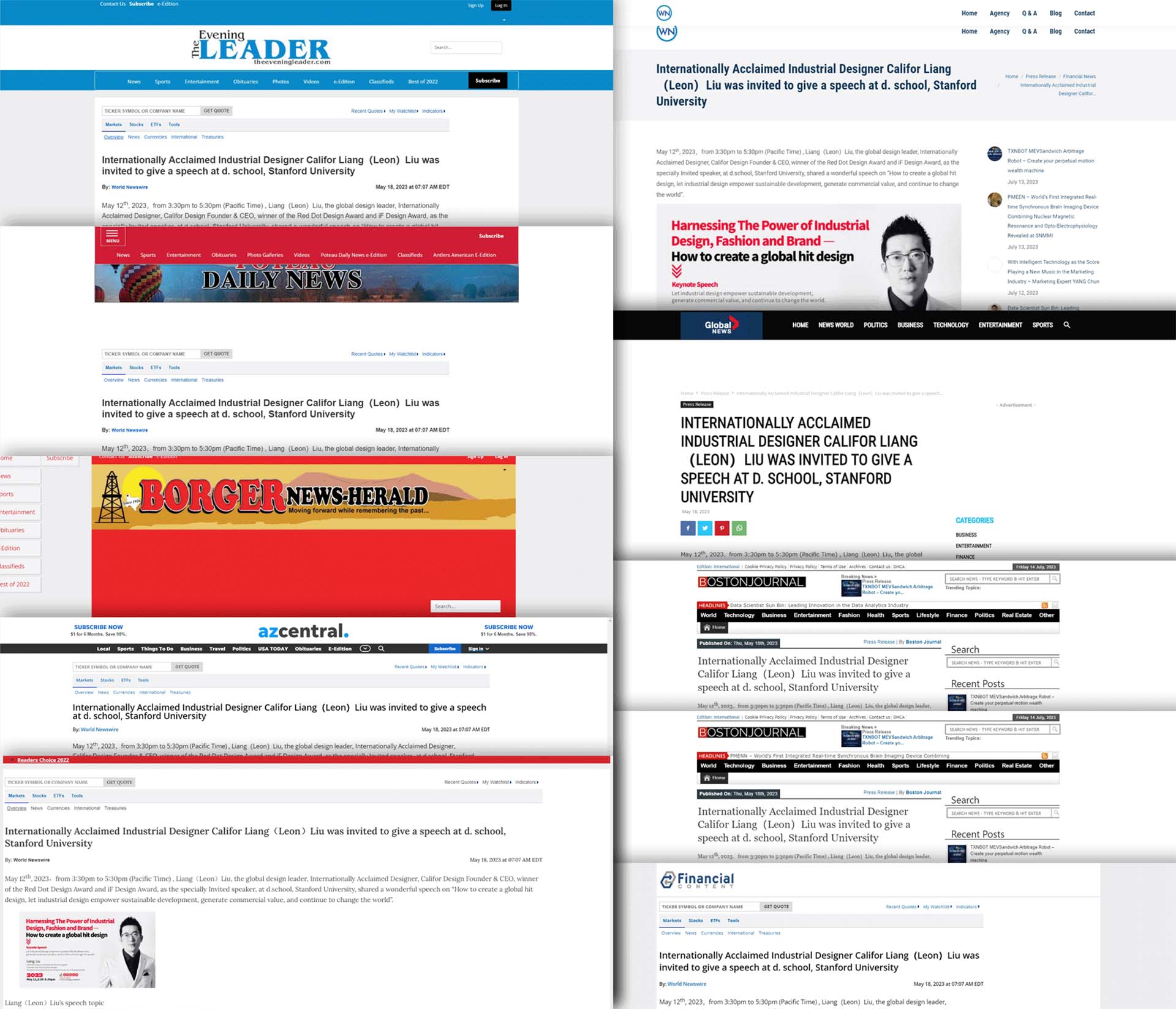 2023全球國際四百多家媒體報道,加利弗創(chuàng)始人、CEO劉亮受邀在斯坦福大學(xué)d.school演講。